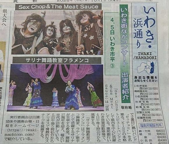 10月1日(水)福島民報新聞の浜通り版に、10月4日(土)5(日)に、開催される、福島県いわき市街なかコンサートの記事に、サリナ舞踊教室フラメンコが記載されました✨